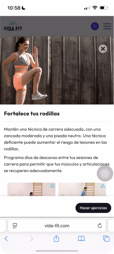 Tu suscripción Vida Fit incluye rutinas, corrección al instante y resultados medibles. Solo inicia sesión para comenzar.